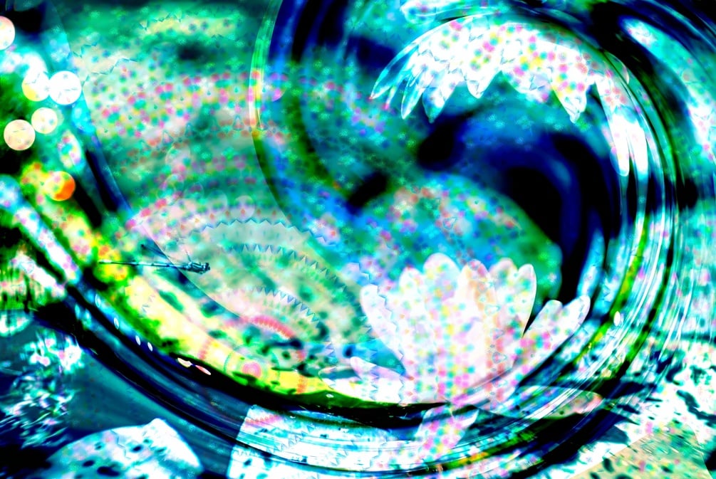 Dragonfly & Lotus Kaleidoscopic Art Print Under Glossy Acrylic Glass